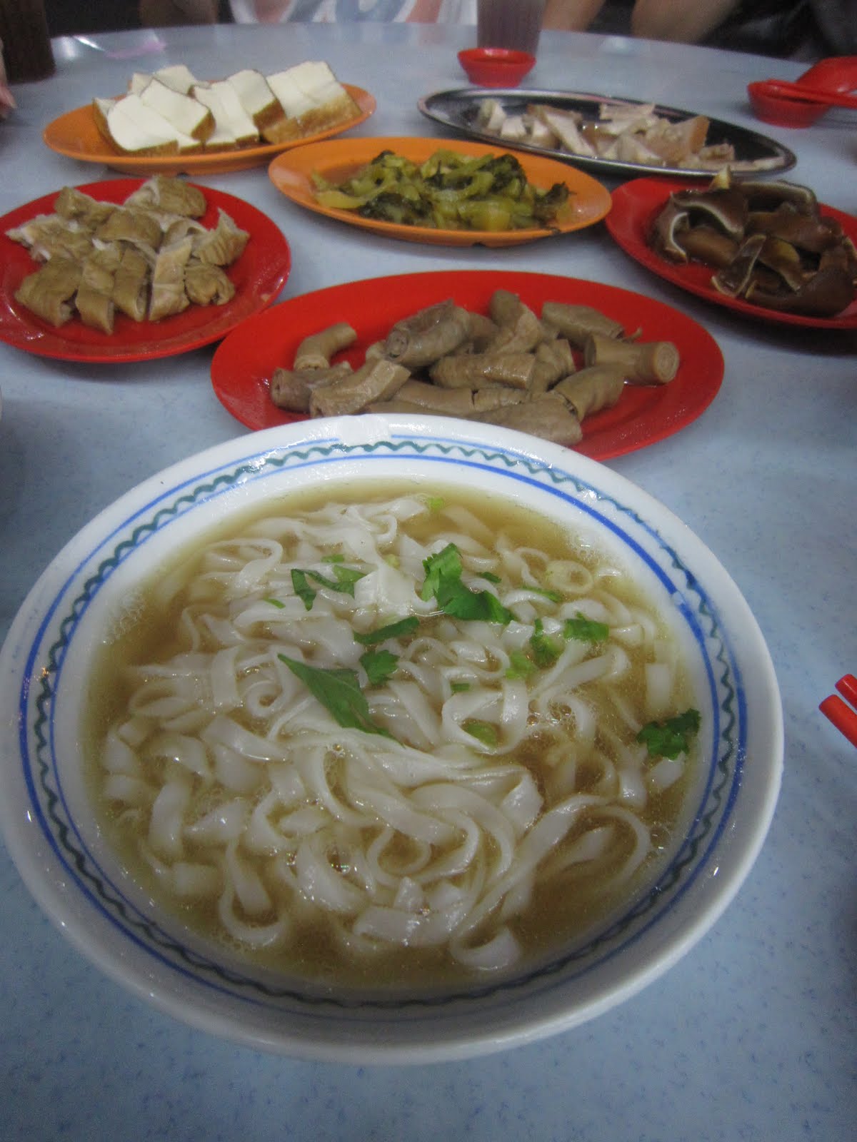 this is called 粿条仔, it is something like Kew Tiao soup, and serve with those pig inner part.
